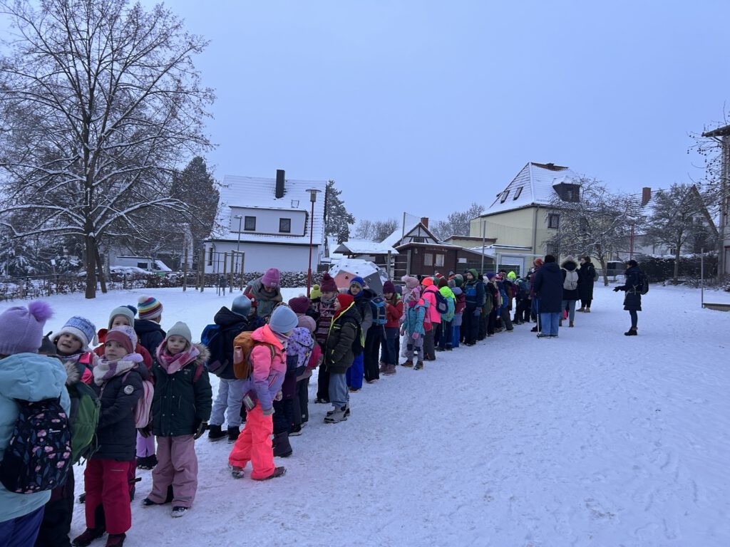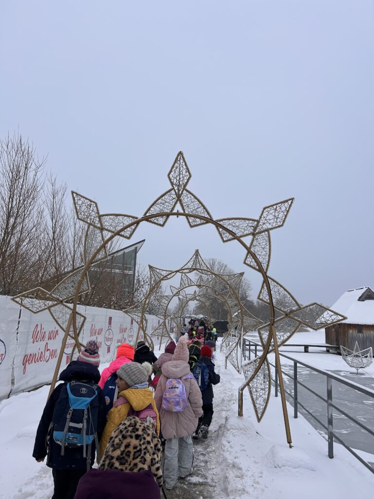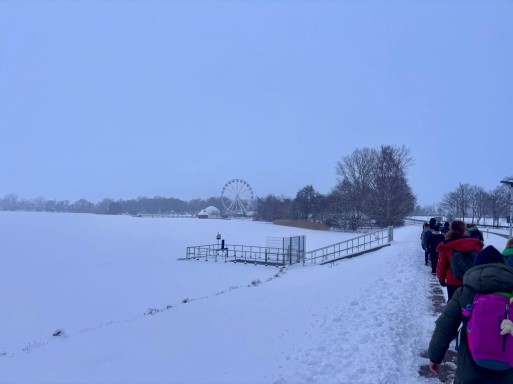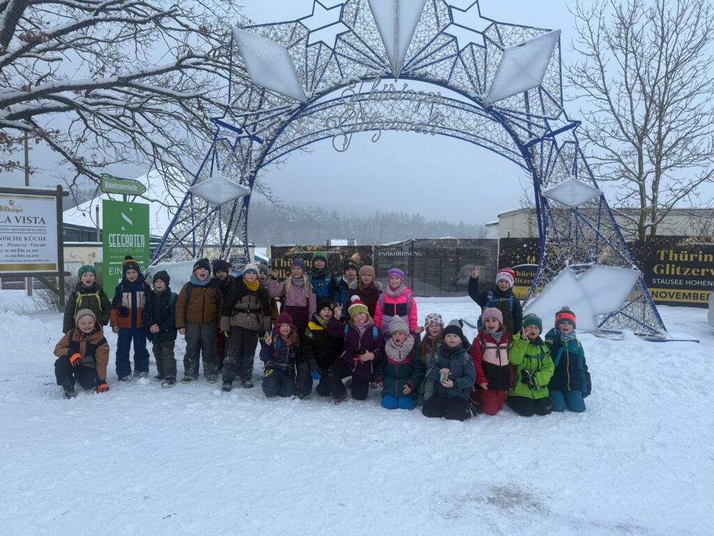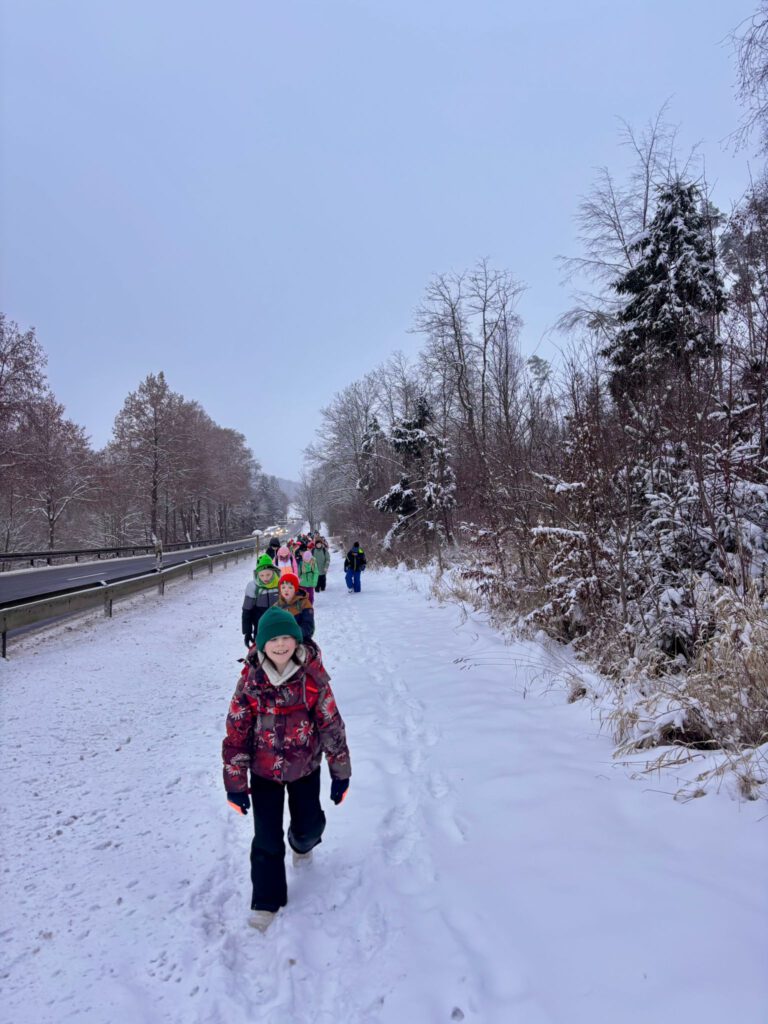 Ein ganz besonderer Wandertag für die gesamte Schule fand am 30.1.26 statt. Bei Winterwetter machten wir uns auf den Weg zum Zirkus in die Glitzerwelt Hohenfelden. Dick eingepackt wanderten wir gemeinsam durch den vielen Schnee – das war schon ein Abenteuer für sich!
