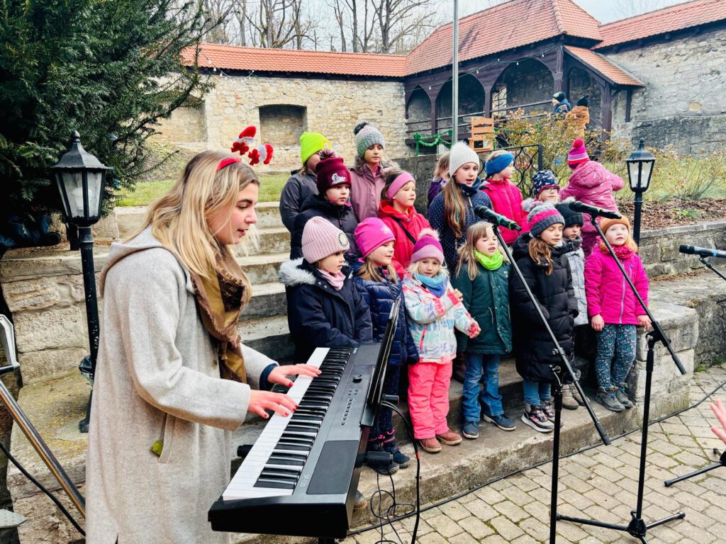 Am vergangenen Samstag sorgte unser Schulchor auf dem Weihnachtsmarkt der Vereine auf der Niederburg für eine ganz besondere vorweihnachtliche Stimmung. Unter der Leitung von Frau Becher und Frau Märtin präsentierten die Kinder ein stimmungsvolles Programm mit traditionellen und modernen Weihnachtsliedern.