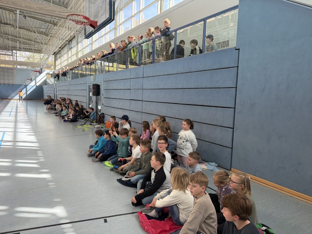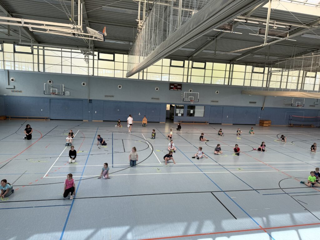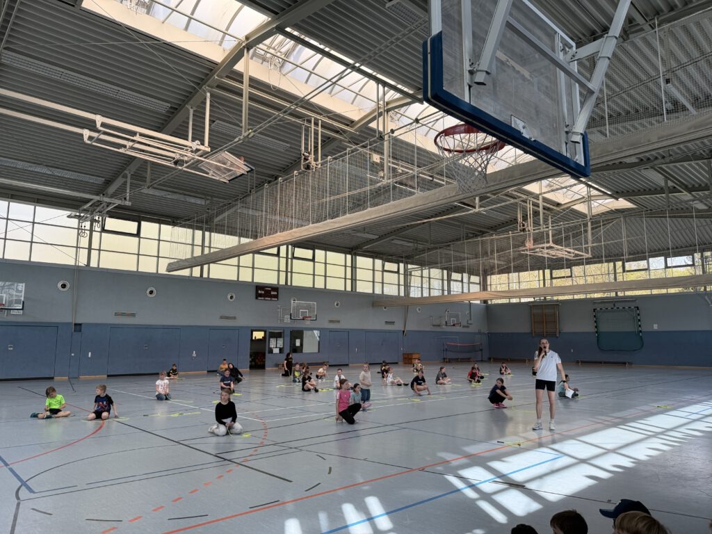 Ein besonderes Highlight war die abschließende Vorführung: Vor allen anderen Schülerinnen und Schülern präsentierten die Drittklässler stolz ihr Können. Die Zuschauer waren beeindruckt von den kreativen Sprungkombinationen und feuerten die Kinder mit großem Applaus an.