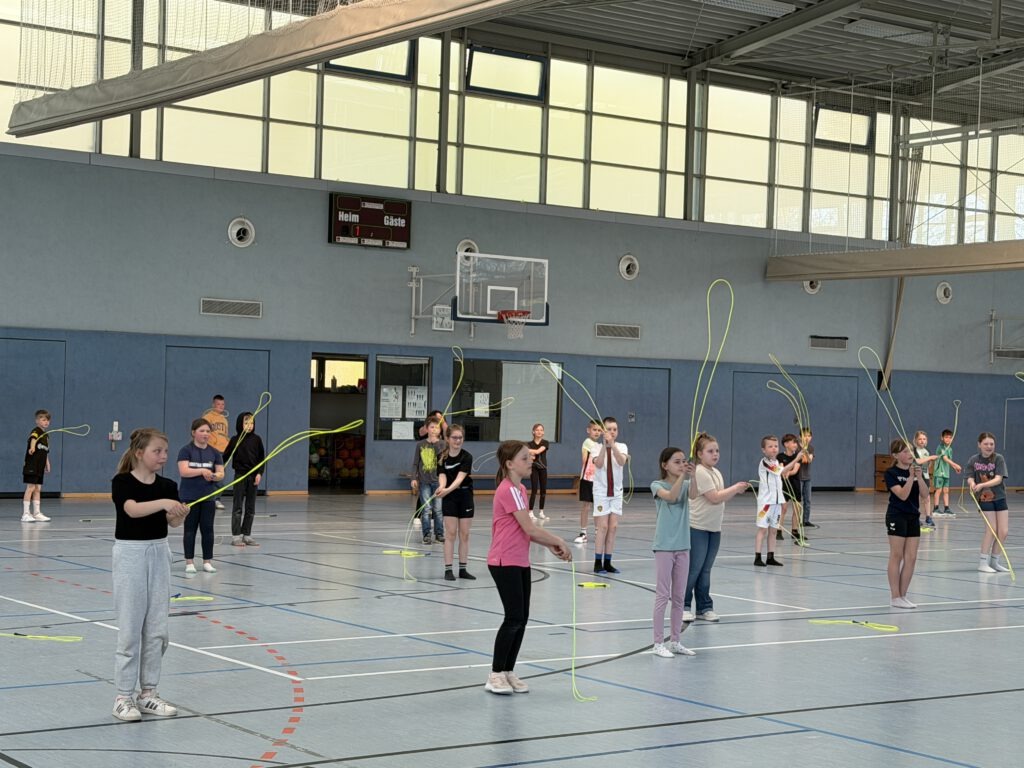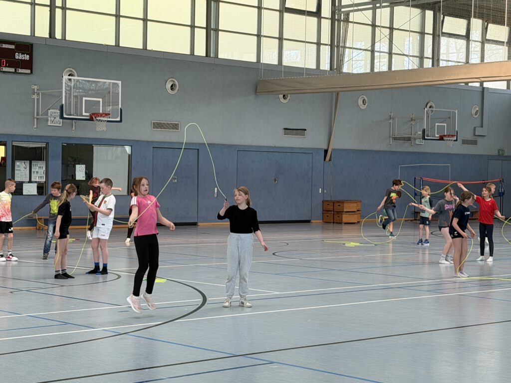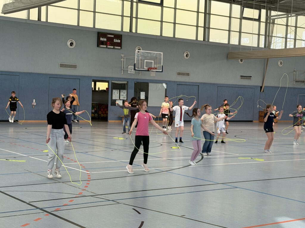 Große Freude herrschte an unserer Grundschule, als die Deutsche Herzstiftung mit ihrem Präventionsprojekt „Skipping Hearts“ bei uns zu Gast war. Unsere Drittklässler hatten die besondere Gelegenheit, an einem abwechslungsreichen Workshop rund um das Seilspringen teilzunehmen.