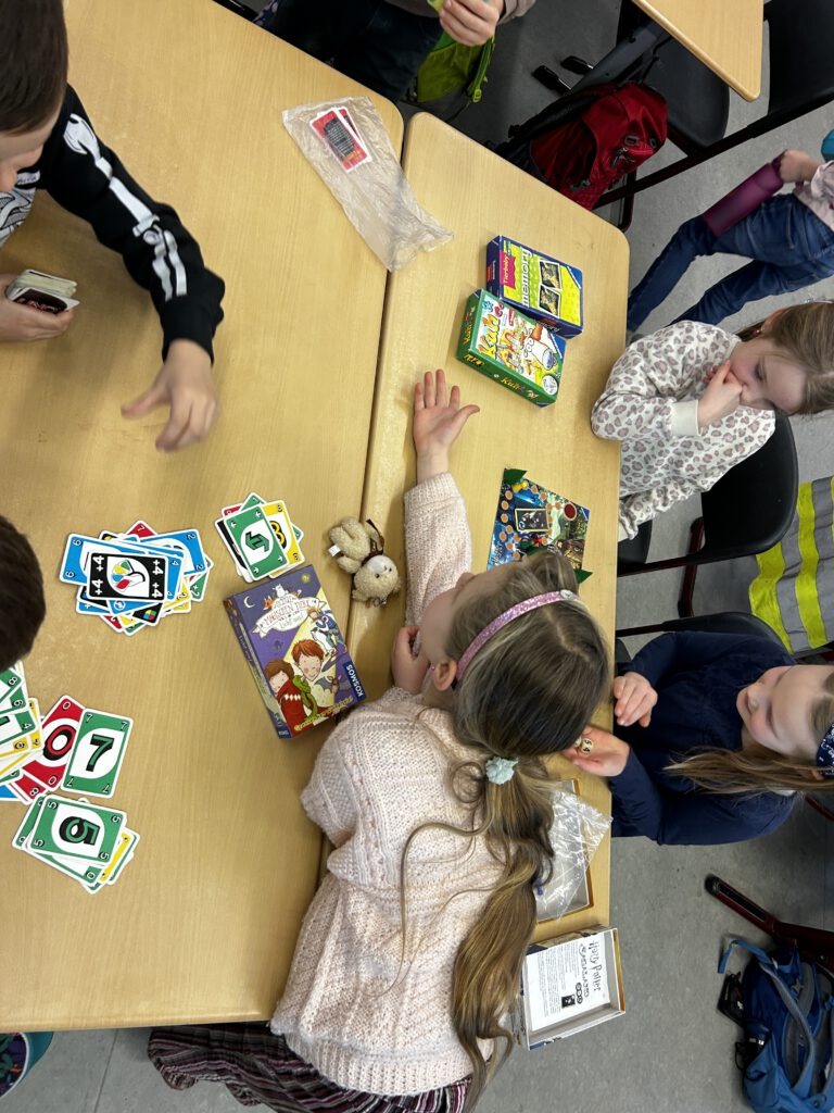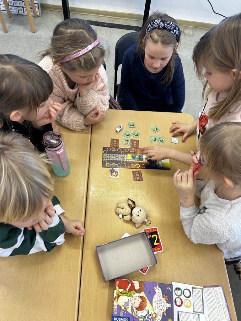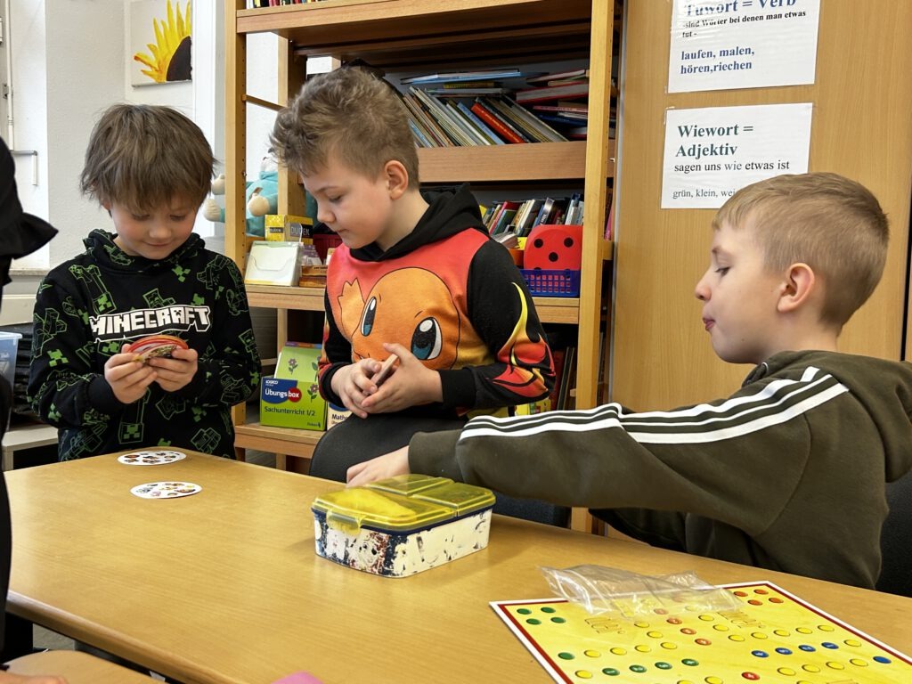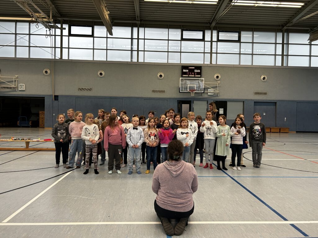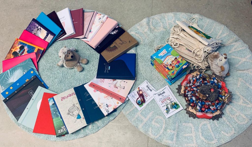 Am Tag der Zeugnisübergabe beginnt der Schulmorgen in entspannter Atmosphäre mit gemeinsamen Gesellschaftsspielen in den Klassen. So starten wir fröhlich und miteinander in diesen besonderen Tag. Im Anschluss werden die Zeugnisse in ruhiger und wertschätzender Weise überreicht und die Kinder können noch einmal auf das vergangene Halbjahr zurückblicken. Den Abschluss des Schultages bildet die Monatsauswertung mit musikalischen Beiträgen unseres Chores, der Vorstellung unserer neu ausgebildeten Streitschlichter und natürlich der Auswertung der Räume sowie den Schülern des Monats.