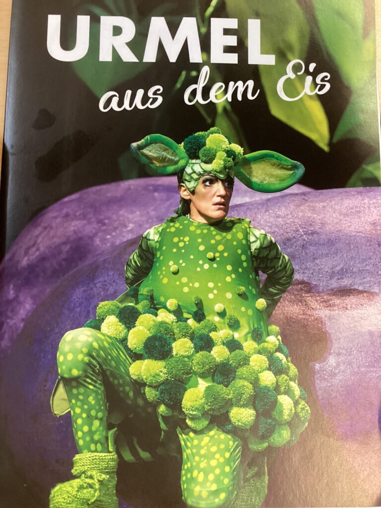 Auf der Bühne erwartete uns ein farbenfrohes, abwechslungsreiches Spektakel: Ein Pinguin im Badebällebecken, ein Waran in einer riesigen Muschel und ein äußerst engagiertes „Putz-Schwein“ sorgten für viele Lacher und überraschte Gesichter. Das Urmel selbst erinnerte – wie ein Kind treffend bemerkte – „ein bisschen an Brokkoli“.