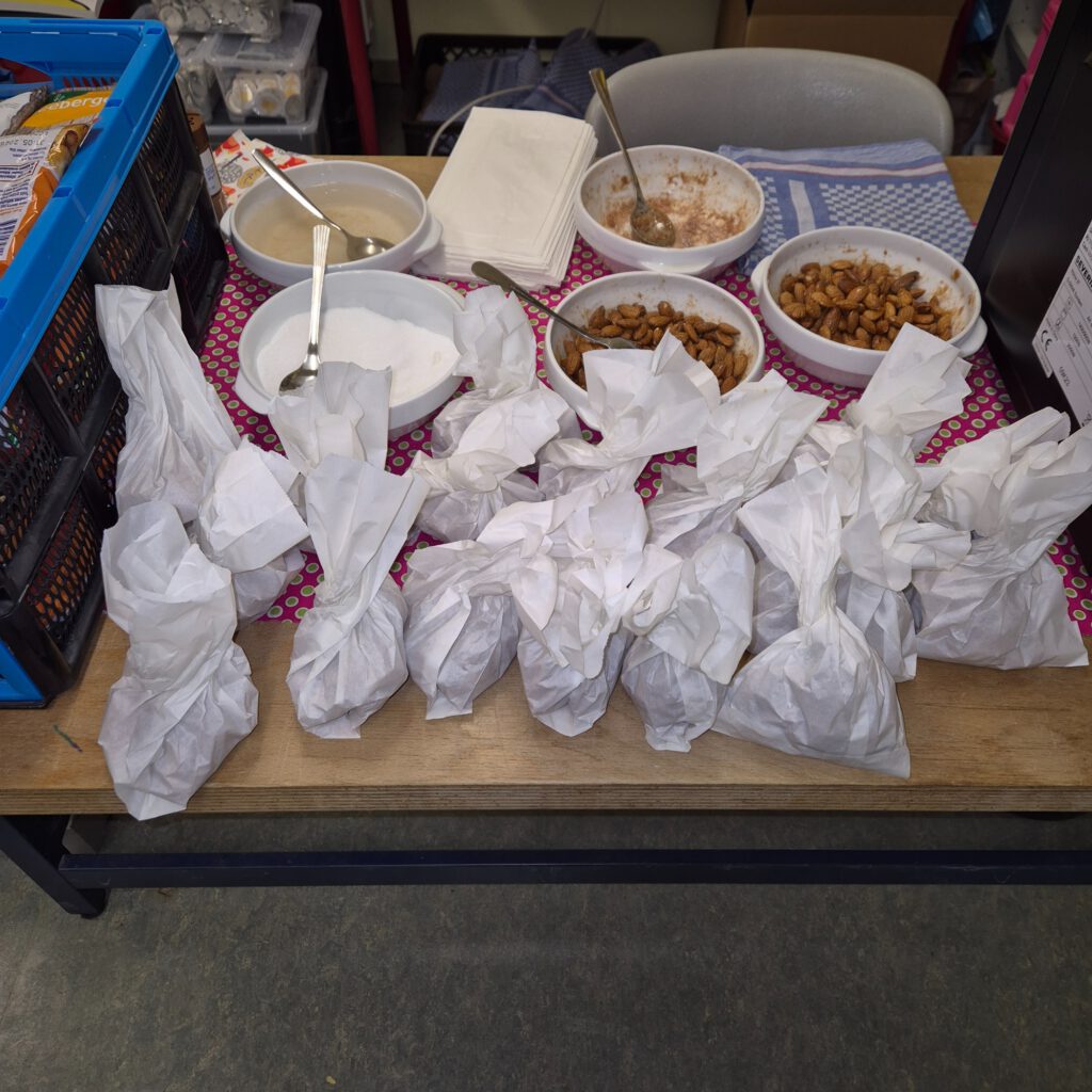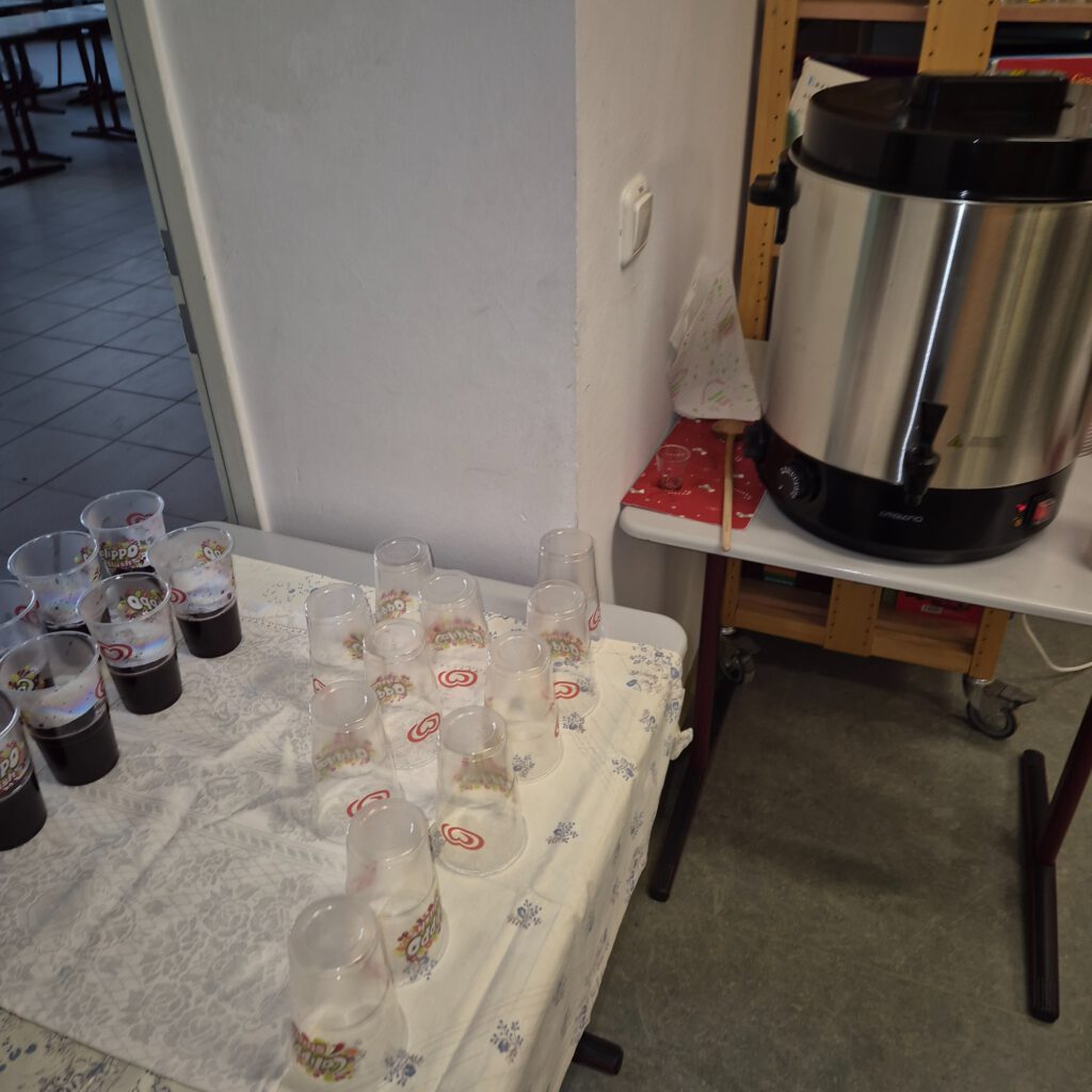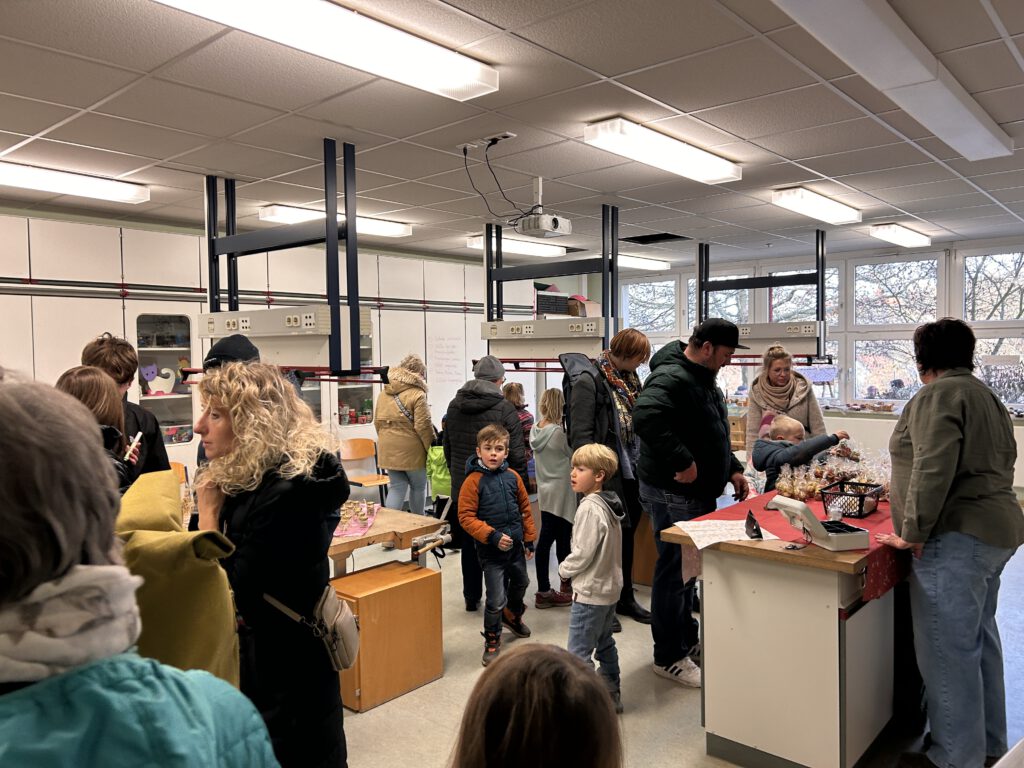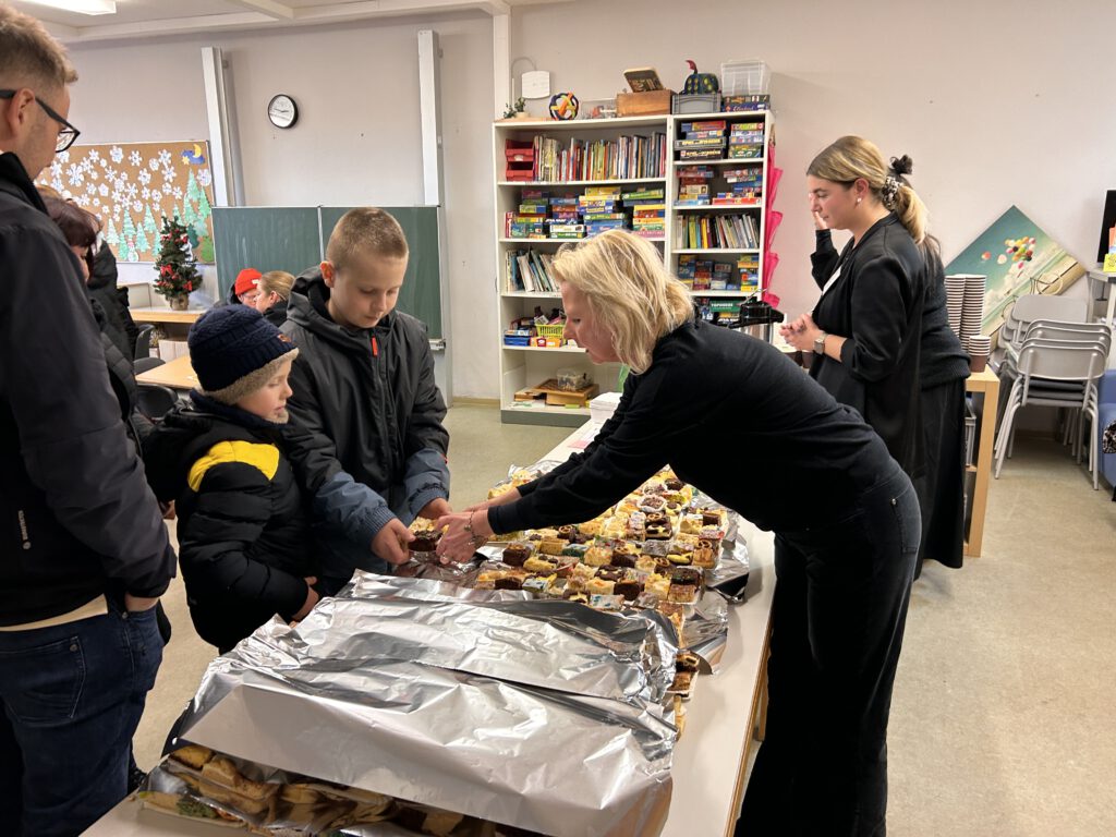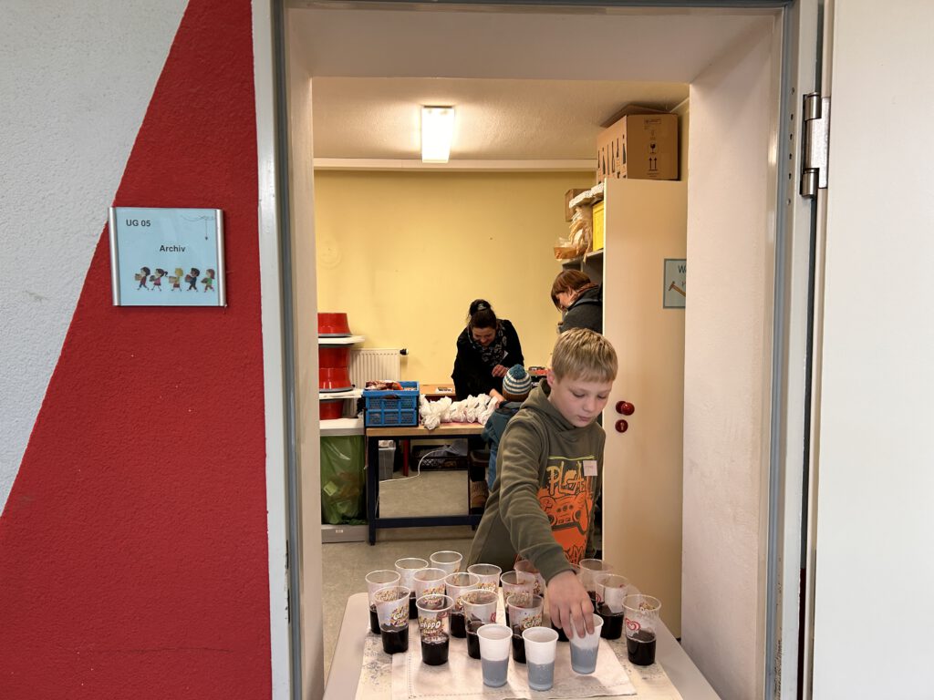 Für das leibliche Wohl sorgten Schülerinnen und Schüler gemeinsam mit den Eltern: Es gab Kaffee, Kuchen und gebrannte Mandeln– ein idealer Rahmen für Begegnungen und Gespräche. Für die Kinder gab es kostenfreien Kinderpunsch- ein Dank an die Spende der Eltern! Die Regelschule bot herzhafte Schlemmereien an.