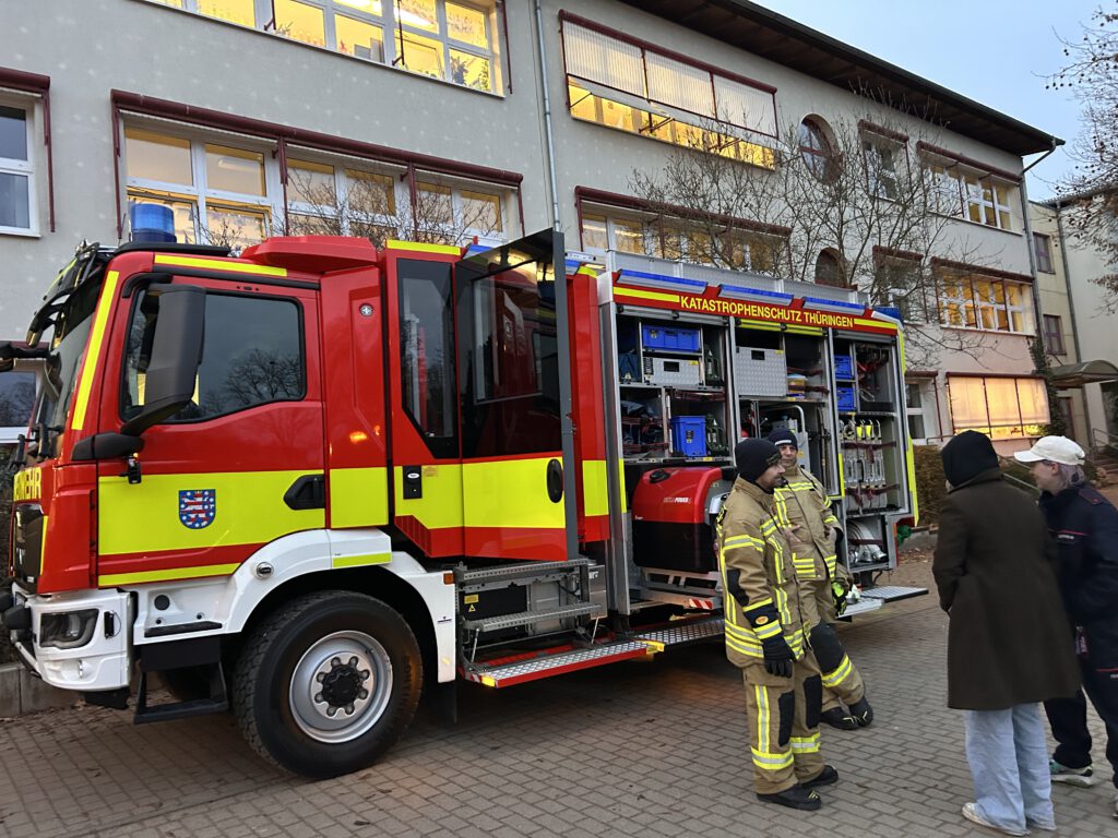 Die Feuerwehr Kranichfeld war zu Gast und die Kinder konnten das Feuerwehrauto bestaunen.