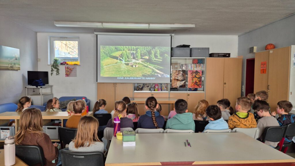 Mit Knabberei, Kissen und Decken machten es sich die Kinder im Gruppenraum richtig bequem. Schnell waren alle gespannt auf die Geschichte der geheimnisvollen Nanny, die mit viel Herz, Humor und einer Prise Zauberei das Familienleben ordentlich durcheinanderwirbelt.