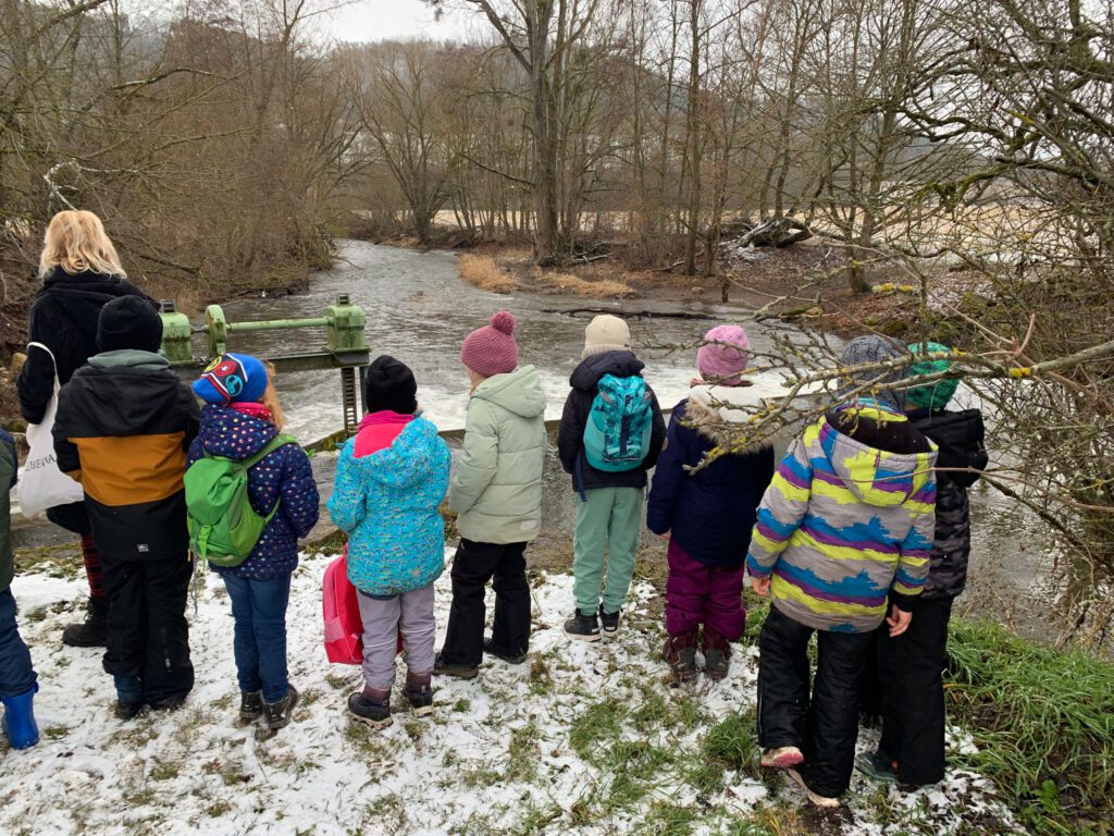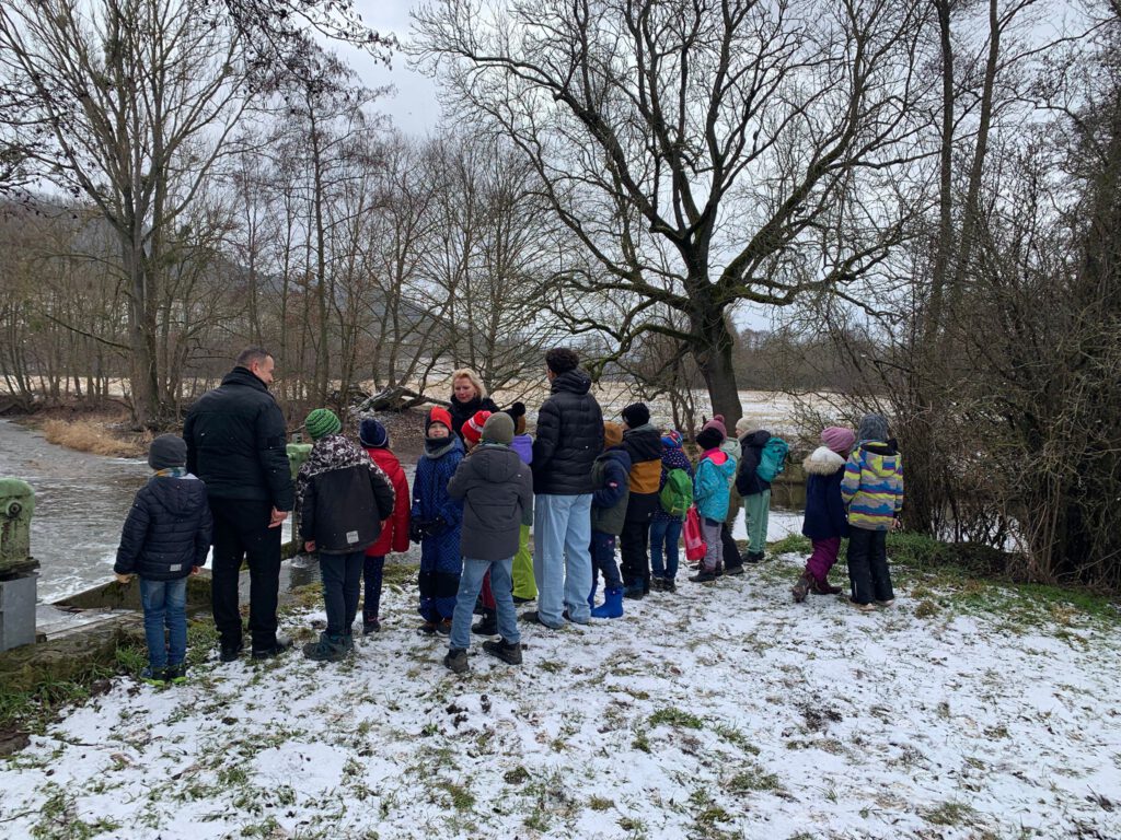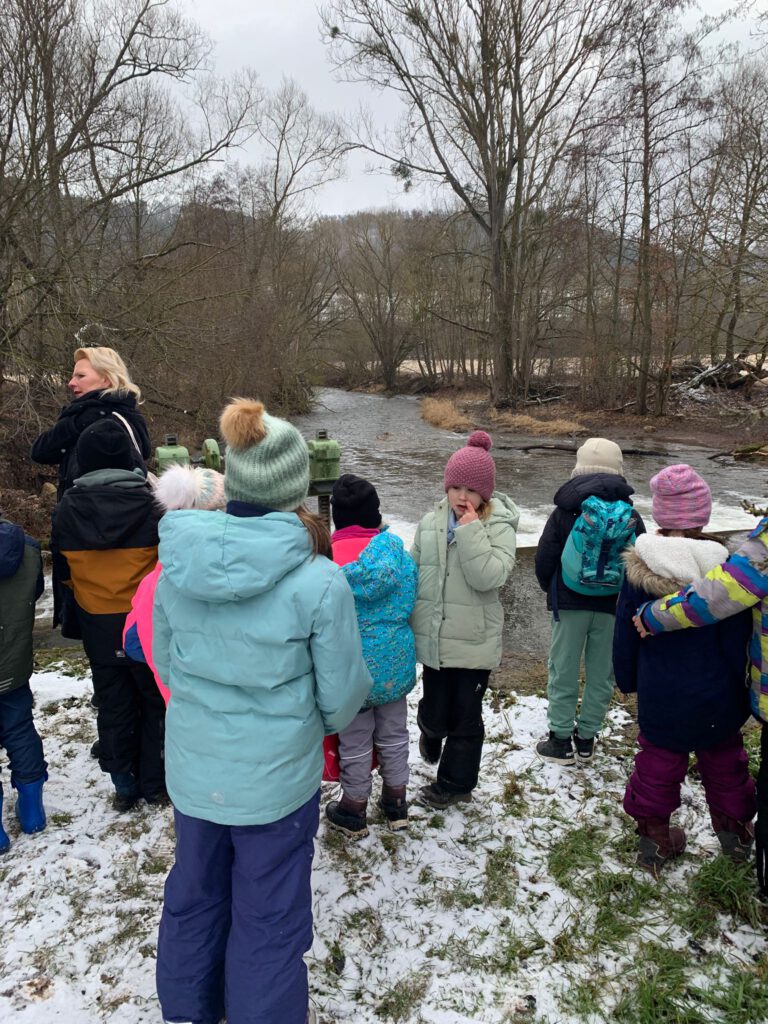Am Mittwoch erlebten die Kinder unseres Hortes einen ganz besonderen Ausflug. Bei leichtem Schneegestöber machten wir uns gemeinsam auf den Weg zum Stedtener Wehr.